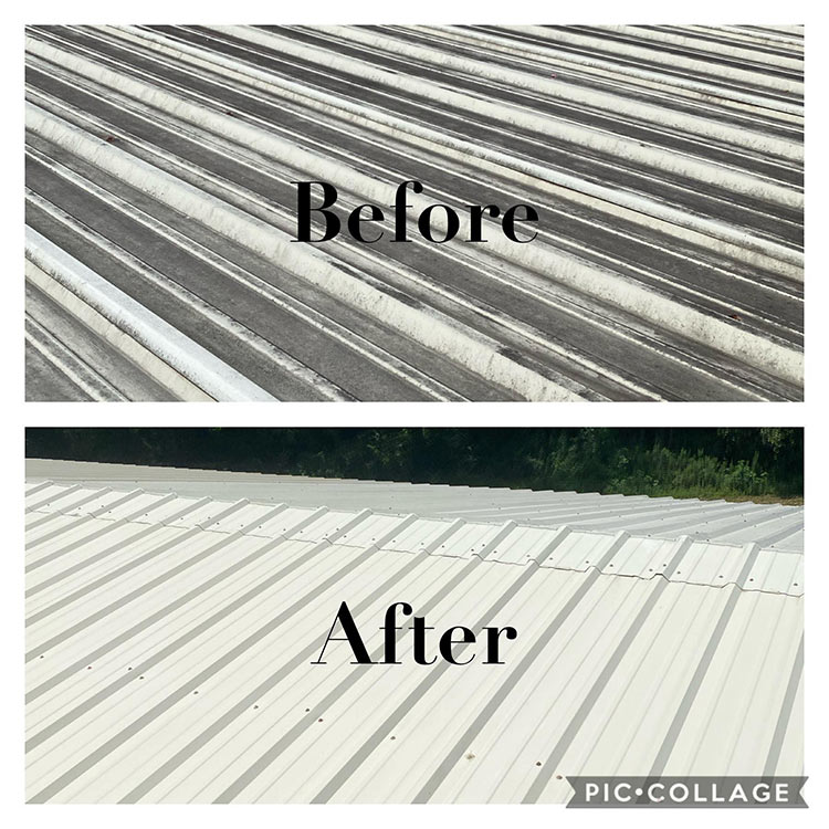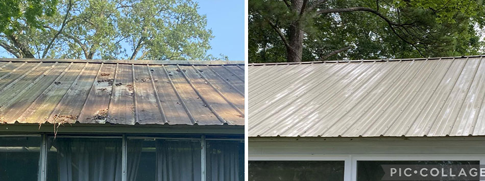 - Roofs: We use a soft wash method to remove dirt and algae from shingles, metal roofing and solar panels
